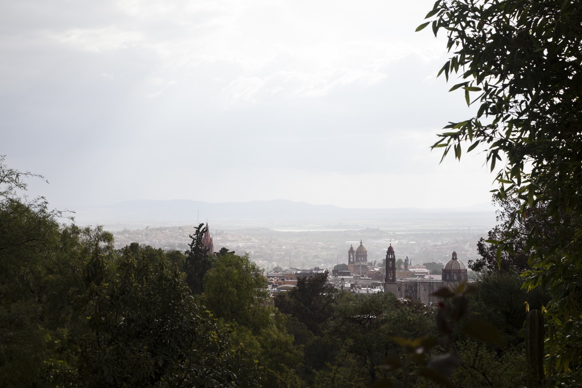 I ended up staying just outside the historical center of San Miguel, in a pink adobe house where my only responsibility was to clean up after the chef – a culinary genius who used every pan in the kitchen at every meal, in this way making me feel useful and necessary as well as feeding me. Instead of wandering the high desert on the ranch (as I did one afternoon), with dogs before and behind me, and dirt as white as salt showing through the burnt grass that was all that was left at the end of the dry season, I sat on the second floor balcony of the pink house, staring at birds and sky and thinking of nothing, or I explored the narrow cobbled streets of San Miguel, all bare swept stone in the sunlight. But the rooftops had gardens, and when the cracked wooden doors of the houses stood open for a breeze you saw courtyards with fountains and the ancient thick-trunked trees that the houses had been built around.